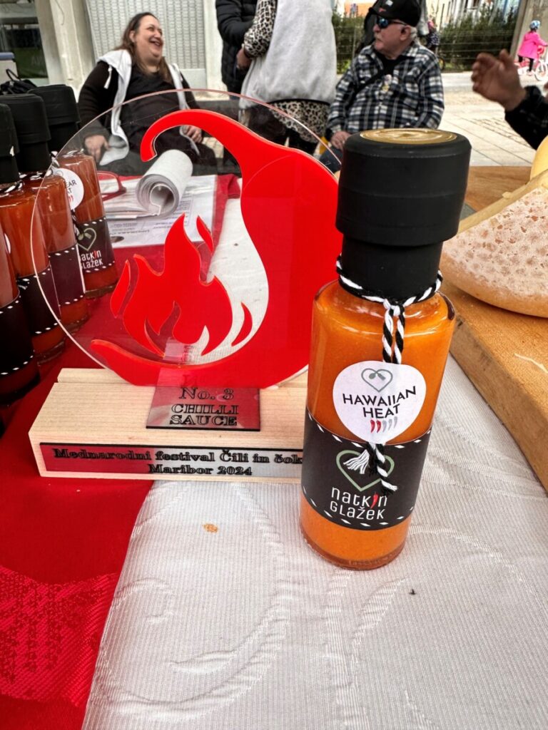 Čili in čokolada festival 2024 15. januarja, 2025 Čili omaka Natkin glažek Hawaiian Heat je osvojila na 6. festivalu Čili in Čokolada nagrado za 3. mesto v kategoriji svežih, srednje pekočih čili omak! Vesela! Ponosna!